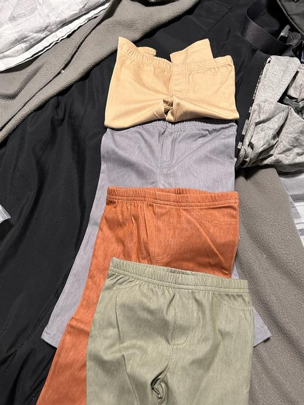 Nice assortment of leggings with it’s various neutral colors so they go with everything. Feels well made and fit is great. They seem to be very durable. The colors hold after multiple washes and they have stayed the same size. The material is soft and stretchy but do not overstretch. Material is also on the thinner side. Would prefer if the material was thicker so I dont need to layer. Would buy in other colors and size up as my baby grows.