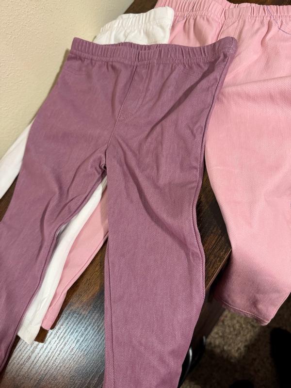 These baby girl jeggings are absolutely adorable and very practical. The fabric has a soft touch and smooth texture, making them comfortable for my baby’s delicate skin. They feel lightweight yet resistant, holding up well after multiple washes without losing shape or color. The durability is impressive for everyday wear, and the stretch allows easy movement. Overall, they provide a cozy sensation and great quality for a 4-pack set. Highly recommended!
