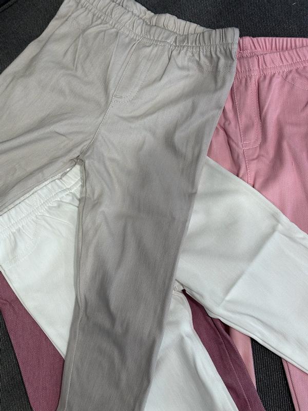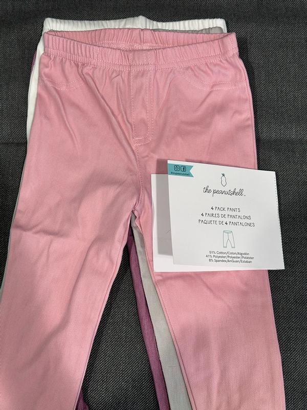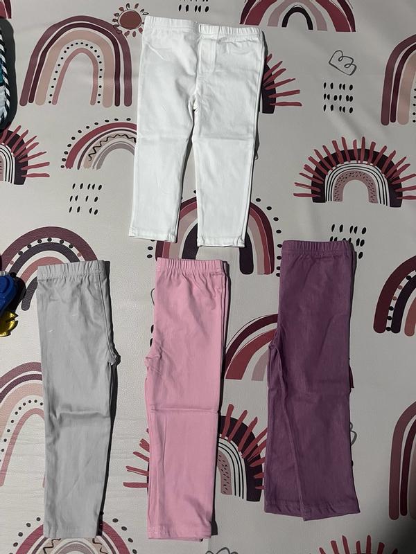 I received these adorable jeggings for my baby girl. And they look so adorable on her. They fit her great and they're very comfortable. The elastic waistband is really nice and makes them easy to put on and off. The quality is just okay, they are a little thick so they are good enough for everyday wear. I love that they come in a pack of four colors,pink, purple,, white and light gray. So they match with a lot of her outfits.