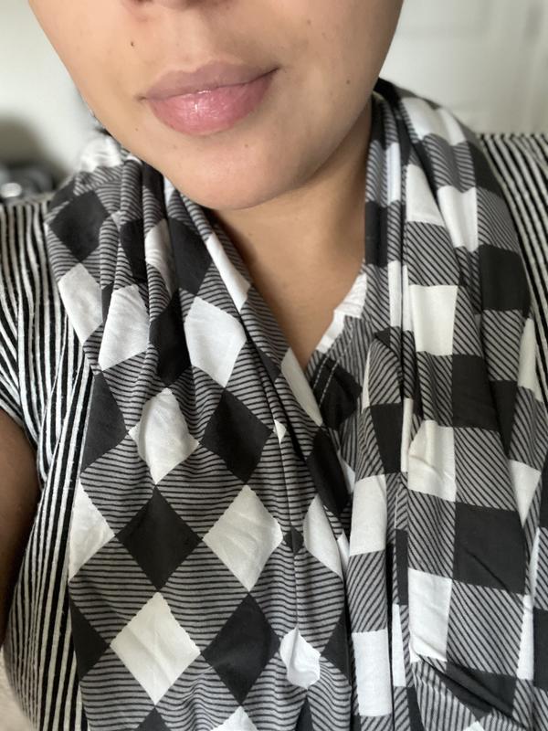 I absolutely love this nursing cover. I can use it for multiple things such as a cover up, blanket, scarf, burp cloth, etc just to name a few. I love the color it came in and it isn’t itchy like most nursing covers.