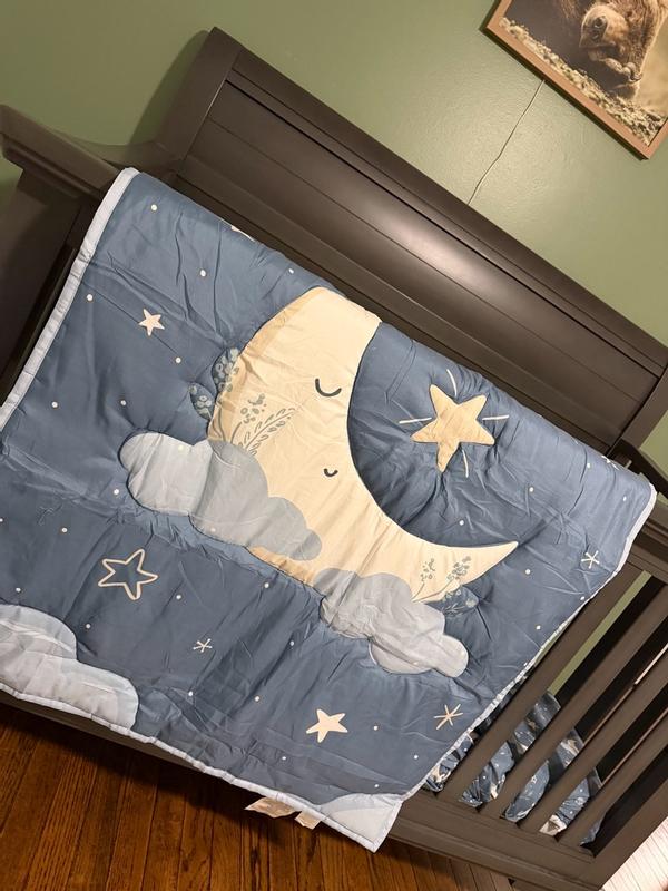 This set is the cutest! Fits the crib perfectly and it’s so cozy. Baby boy instantly falls asleep when he gets the bedtime tuck in. The design with the moon and start is super cute and I just love it!