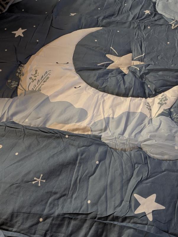 I love this bedding set for my daughter’s bed and she loves it too it’s so cute. I love the design of it I’m very much into the celestial things so this worked out perfectly. The fabric is really nice it feels good on the skin. The blanket is actually really cooling and perfect for summer days in Florida. It’s not really heavy or anything it’s very lightweight but comfy.