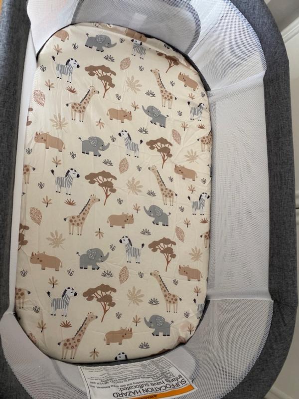 This 4 pack peanut shell green Dino bassinet sheet is so cute love the designs and the material has held up very well and I have wash and dried them numerous of times. I love you get four of them so you can put a fresh one on while you’re washing the other. They seem very breathable and they fit the bassinet perfect