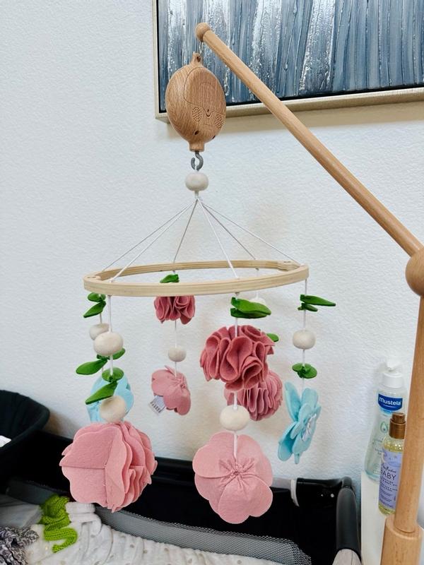 This modern wooden and floral design Mobile such beautiful design and details for different themed room. This was easy to assemble and I love the music.