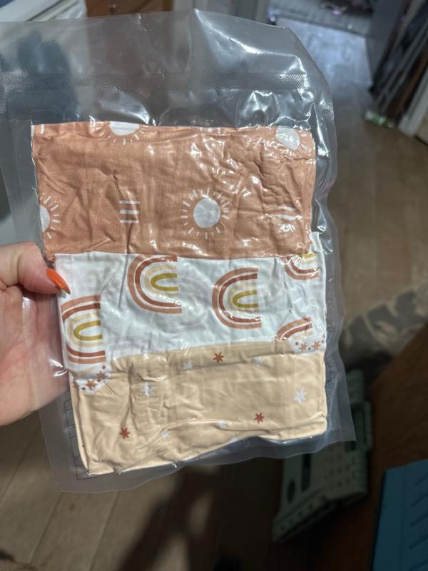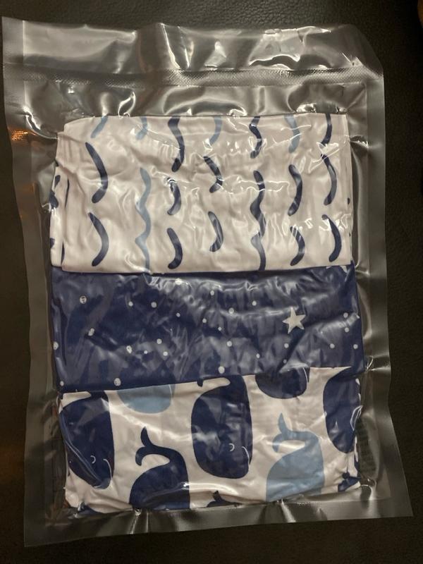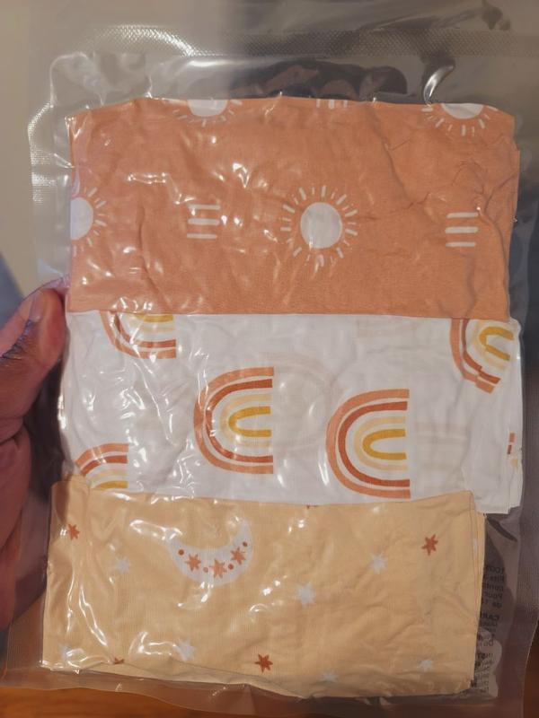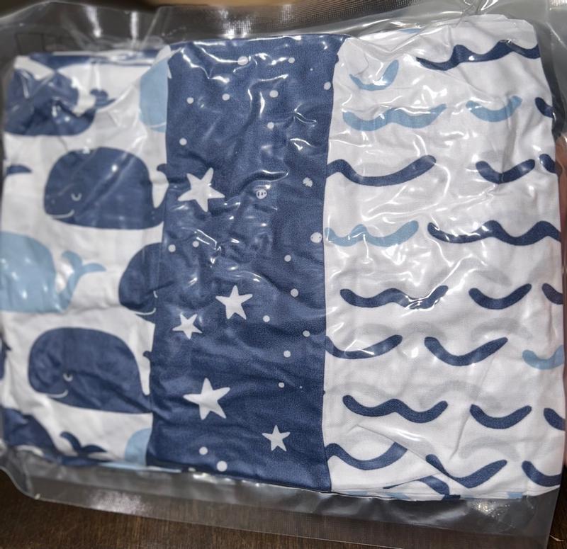 These covers came shrink wrapped in a 3-pack. I was really looking forward to the set because of the cute patterns on all 3 in the set. The material is very thin and I doubt it will stand up to much "spillage" during a diaper change, but they do fit the Peanutshell well.