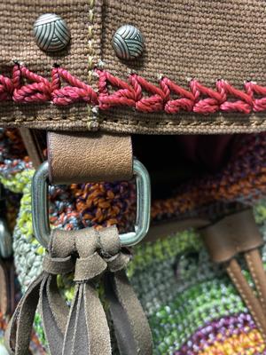 Great quality and very pretty! I love the stripes. The only thing I would change is the snap closure inside of the bag and I cannot snap it shut as it will pull too much and cause the snap to come off. I just pull the leather strings to close it and it stays closed just fine that way.