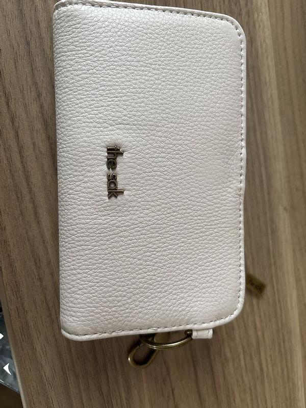 Love this little wallet but only can give it four stars I miss having a place to my dollar bills! Matches my suede purse beautifully