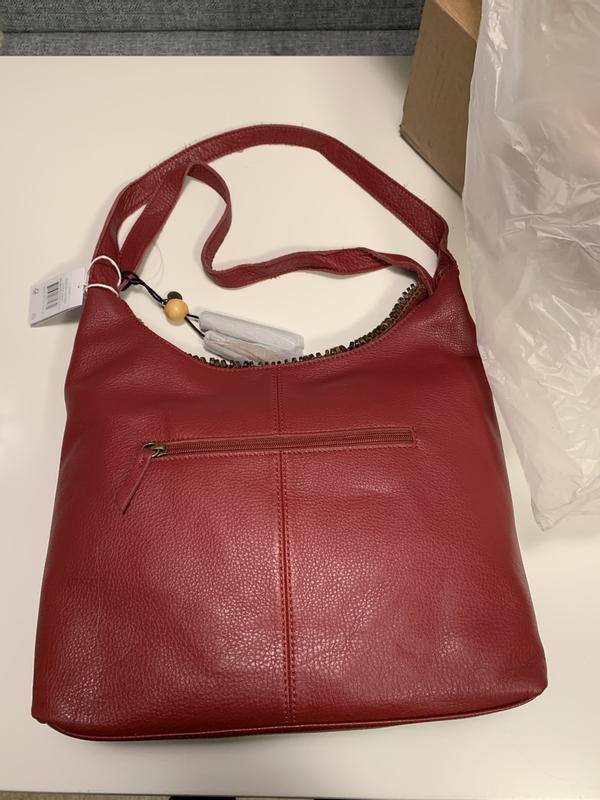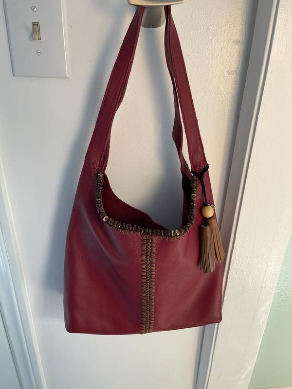 I am thoroughly impressed with this bag. Its rich color is quite appealing, and it offers substantial storage capacity. The front pocket is particularly convenient for easily accessing keys. I frequently receive compliments on it.