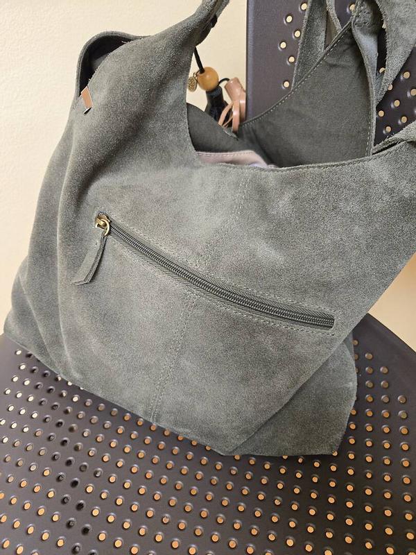 Love this bag and color ! Wanted something a little different from the browns and tans . Sits nicely on shoulder bc the straps are suede , no slippage off of shoulder! Lots of compartments and zippers , lined . Highly recommend !