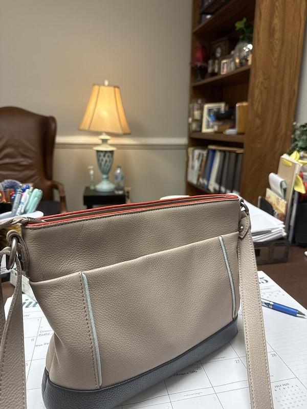 Beautiful bag. The leather is soft and the color is amazing. There is plenty of organization with the inner pockets and the large exterior pocket is perfect for my cellphone. Love it!