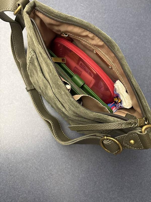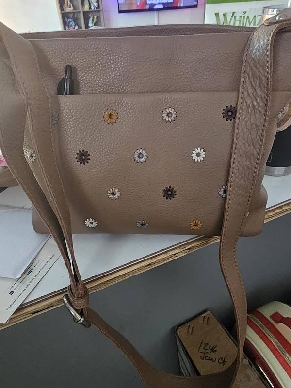 Love the size of the bag. Holds everything I need The color is gorgeous