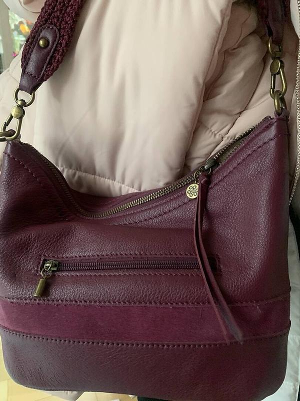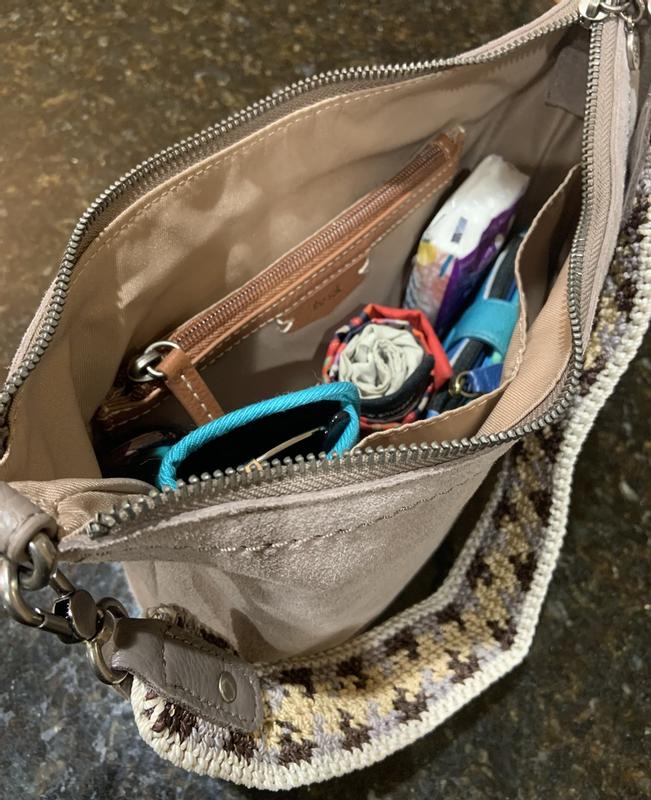 Haven't used the suede bag yet as it is still pretty warm out where I am, but I really like the size of the bag and i think will look great in the cooler months. I like there are 2 strap options. Would love a longer leather strap option to turn it into a crossbody. Fits my kindle too, which is a big plus. As a short person, the size is nice as compared to alot of the other sak bags which are adorable, but too big on my frame