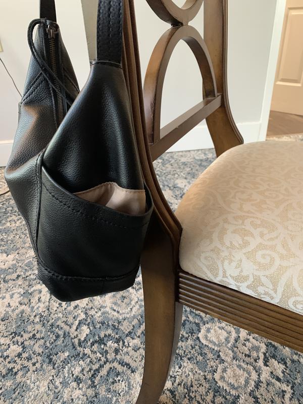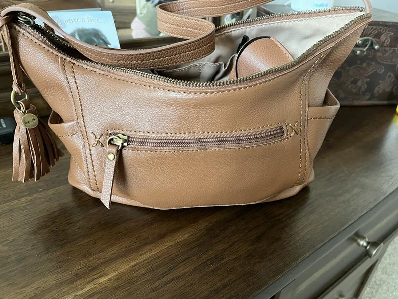 Love the multiple organizational pockets---just the right amount! Beautiful, durable leather. Perfect size for my daily essentials without being too large. Only purchase the sak handbags. They have spoiled me!