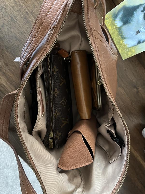 Love this purse. Prefect size, because I love the large opening. Beautiful leather, not too heavy. Ineed more colors!
