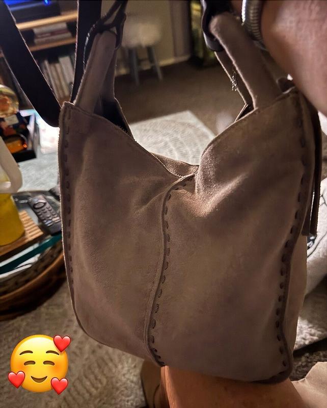 In love with this bag! It fits more than it looks like it would. It is so soft and beautiful and I’m so excited to have it! Beautiful suede and leather. I WANT MORE!