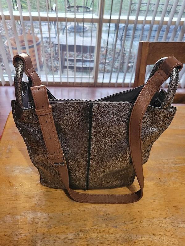 Love this bag, Wanted a mid-sized and different color. Went with crossbody ,dark silver. Great closure with top zipper, compartments in inside, side zipper . Just love this bag. Holds everything I need.