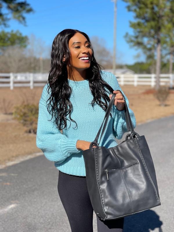 This gorgeous bag is my new favorite for winter. The neutral Mushroom color and soft suede go with anything and look both casual and classy. This large bags holds everything, too! My large planner, necessities, and even small packages.