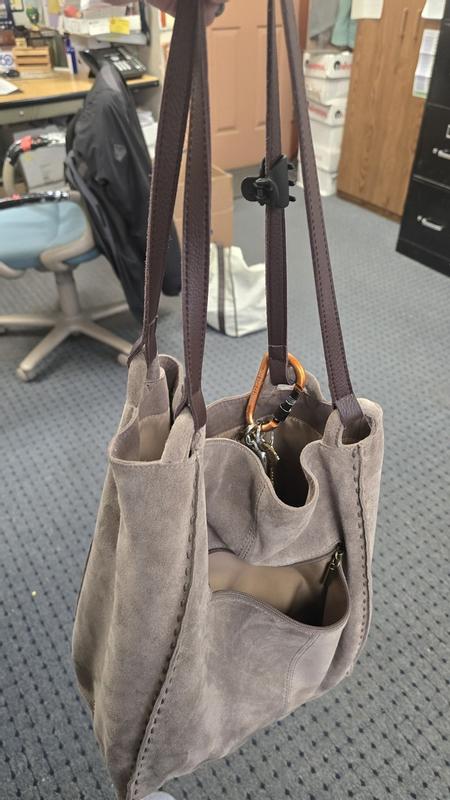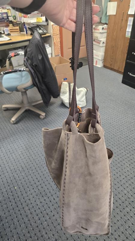 I recently purchased the Los Feliz Tall Tote in the moss suede. I already had one in the dark brown smooth leather. The Sak suede is so soft and looks so pretty. The moss green is a color that will go with many other colors and will be good for many winter seasons. I have enough Sak handbags to know that they wear well. This bag will hold all that you need plus more. Even though it is large, it feels good on the shoulder and tucks in close to the body.