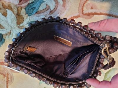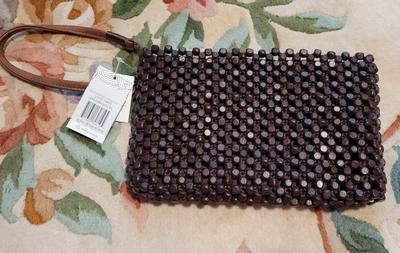 I had ordered this clutch to go with a dress for a Mother's Day Brunch. Unfortunately it did not arrive on time due to two different delays in shipping with UPS. When the package finally arrived, the box looked like UPS treated it like a soccer ball . :( The clutch is lovely and I like how the wood beads are used throughout the bag. Even though it did not arrive on time, I am going to keep it as the brown is a rich dark chocolate color that will go with many things. I am glad I got this on sale as I am going to need to reinforce the side stiching that is attached to wristlet loop. I am afraid that the current stiching will not be strong enough to hold once I have a phone and necessities in the bag. This why I gave it 4 stars instead of 5. The clutch measures exactly 6 inches in height and 9 inches in length. The interior has a zipper pocket and places to put cards. All the beads are smooth to the touch so the clutch feels nice. I look forward to carrying it. :)
