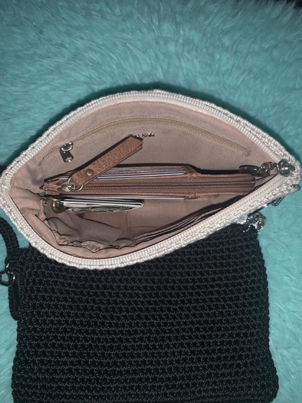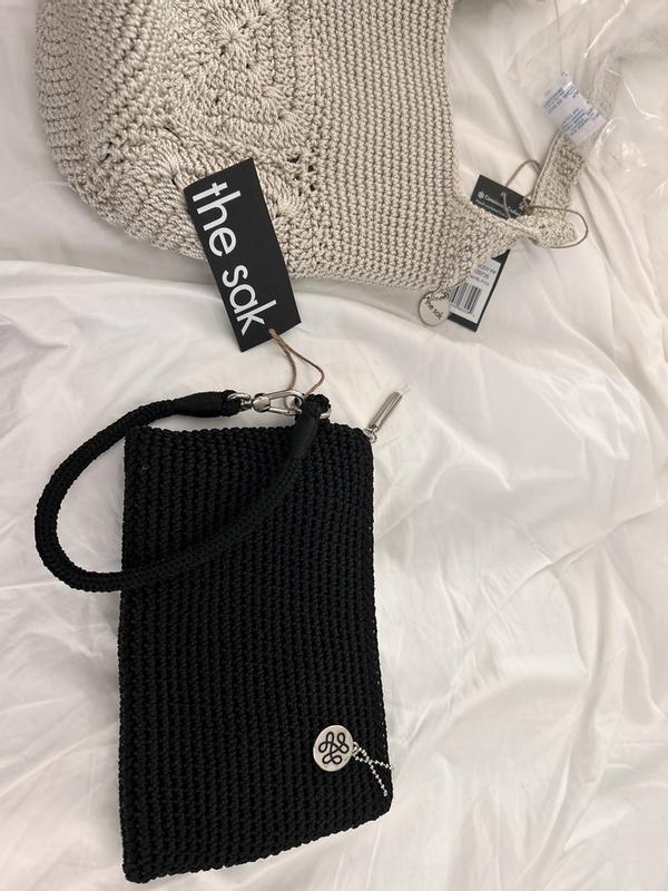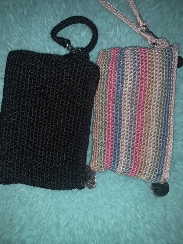 I love this small crocheted clutch in pink. It’s beautifully made with attention to detail. Fits my phone and small wallet and lipstick, and key fob.