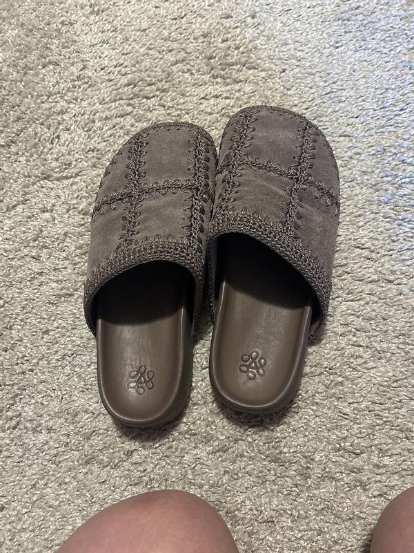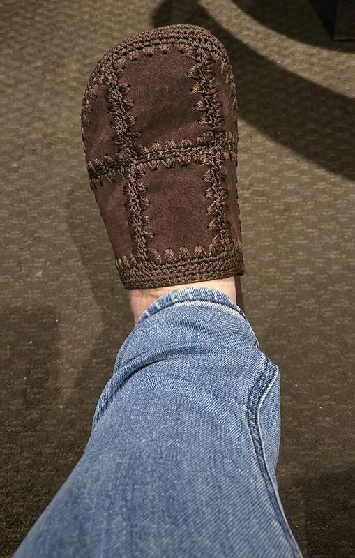 I wanted to love these clogs. They are so cute, however, the footbed was squeaky, slippery, and sweaty even with socks on. Please change the footbed material to something better. They would not really stay on my feet. I think the opening is too high on the arch and the crochet stitch across the metatarsophalangeal joint started to bite.