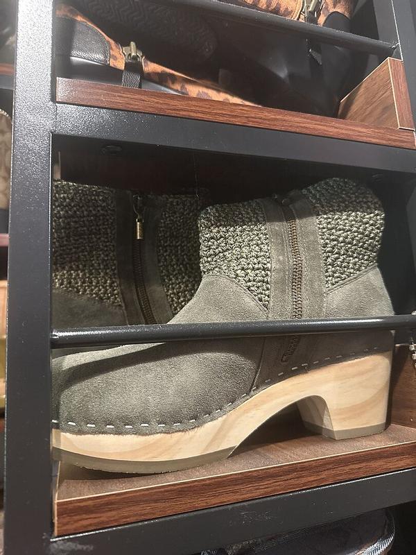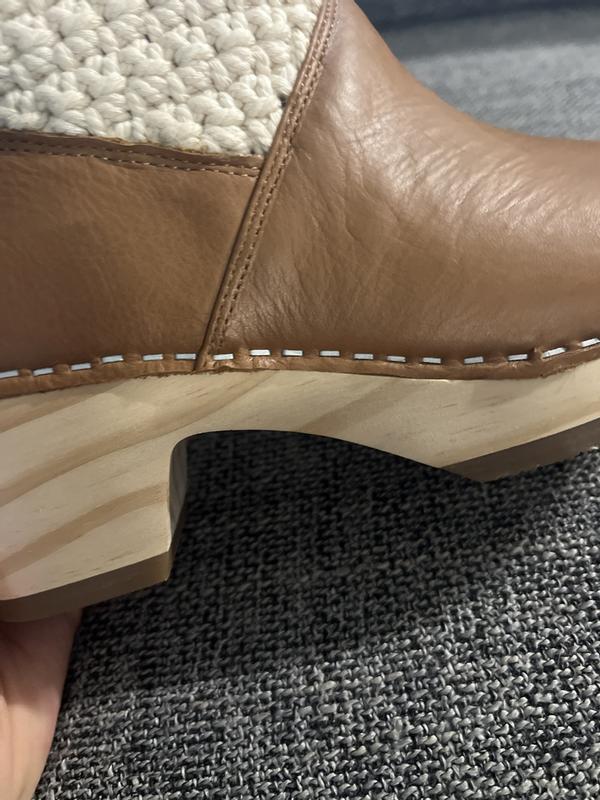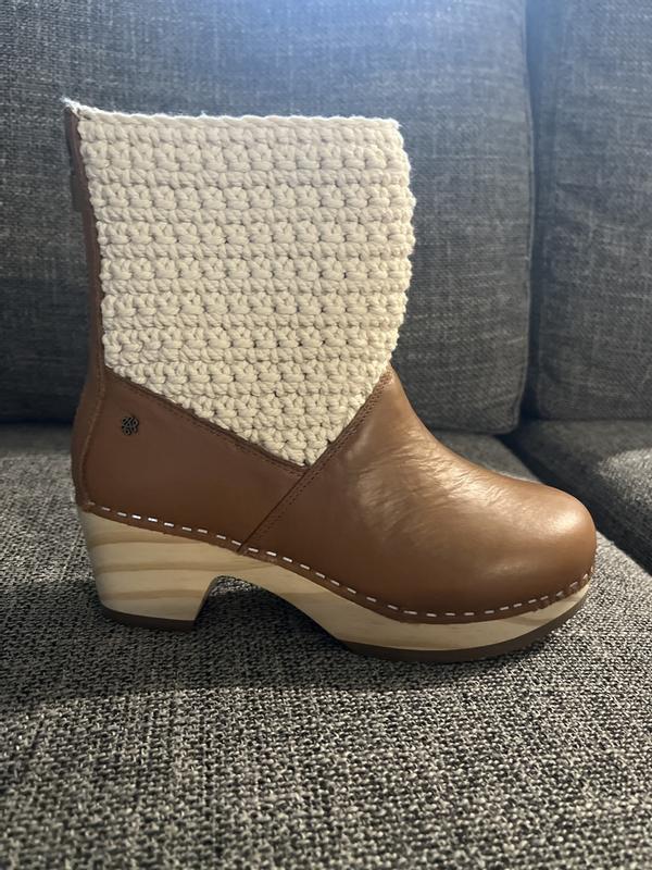 I love these genuine wood sole clog boots, the quality soft leather and the sak stretchy material which makes them feel comfortable but also look sleek on my legs. Super cute even on my short legs due to the sak stretchy calf! And a perfect lift for wider leg jeans and pleated pants. And the price was less than competing products which don't offer this quality.