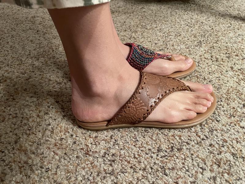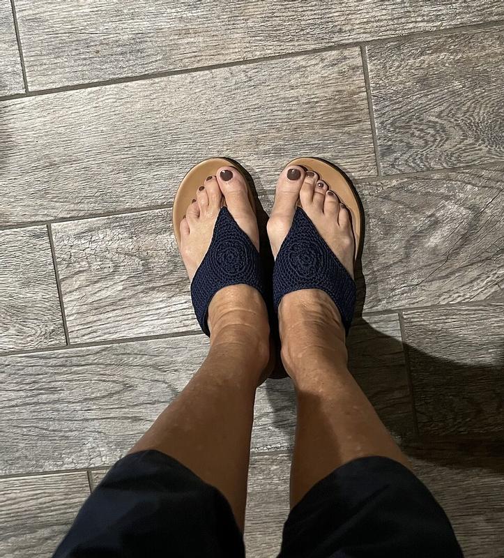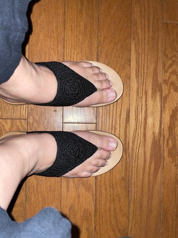 I love the look of these sandals but the fit is disappointing. The metal ring bothers my toes when I walk in the sandals. I also feel like the lining on the crochet prevents the shoes from fitting properly. It’s tight across the foot in some places while still being loose and sort of droopy in others. If there was no liner, I think the fabric would conform to my foot shape and it would make them much more comfortable. The colors are very nice and this is almost a sexy little summer sandal.