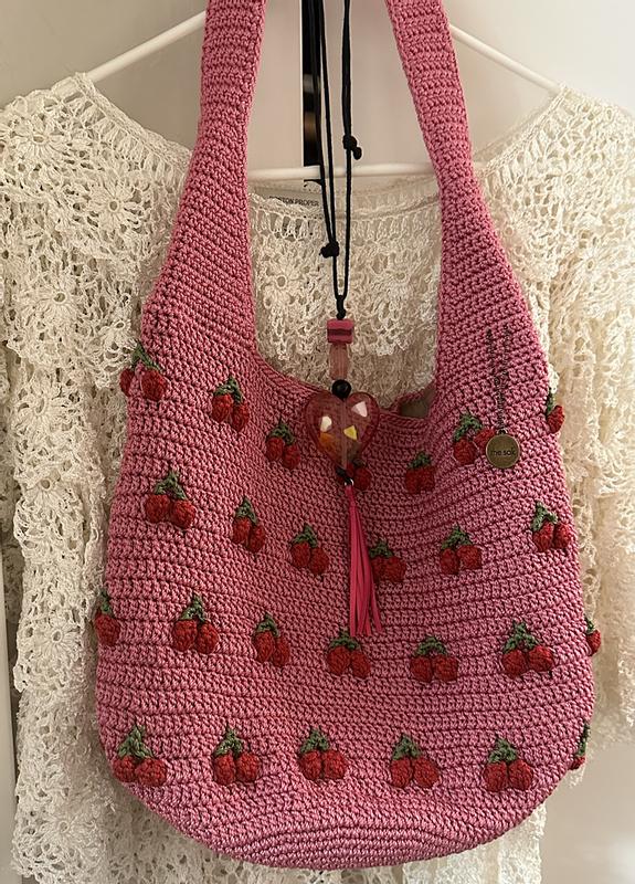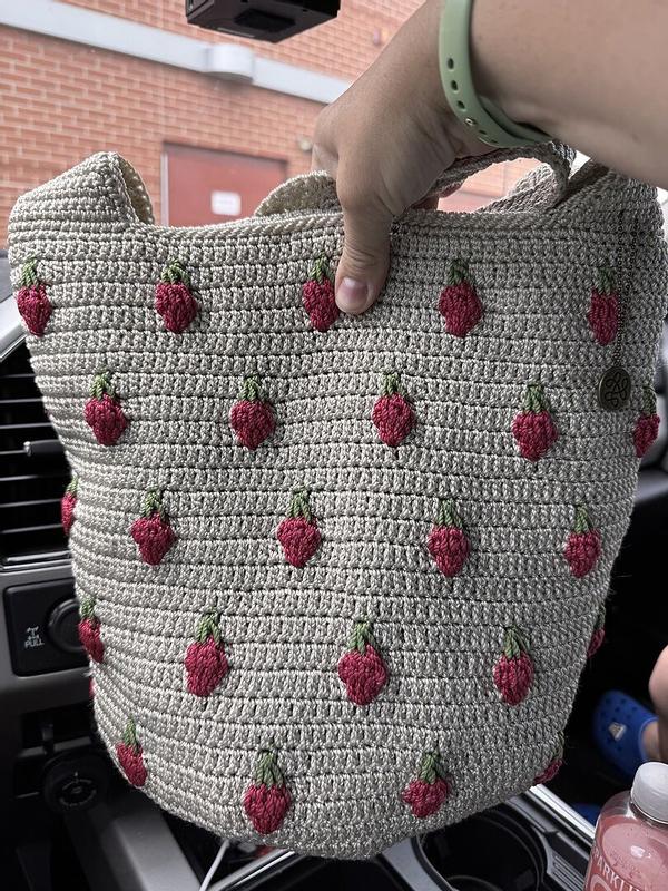 The perfect summer bag, not too big or too small. Super comfy shoulder strap and quality craftsmanship. I always get compliments on the adorable strawberries when I wear it out.