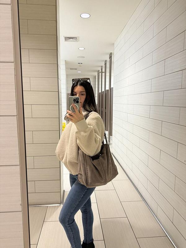 I absolutely love this tote. I have it in about six colors, both leather and suede. It’s great for work because it holds all my essentials plus my drink and my lunch. And the tote itself is lightweight so it doesn’t add much weight when I pack it full. This is one of my favorite bags.