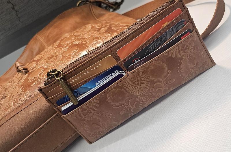 The purse is exactly what I wanted. The outside pocket is great for my phone and the other outside zipper pocket is very useful as well. The inside has a zipper pouch and three other small pockets. It is easy to keep things separate and easy to find. I also love the suede exterior and adjustable strap.