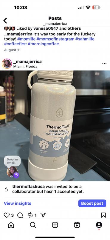 I absolutely LOVE my new water bottle! I’m a teacher so I’m always on the go, and carrying a million things in my hands at a time and the handle with the no spill lid, I can carry everything without worrying about spilling! I’ve also gotten so many compliments!! The color, the sparkle, it’s perfect!