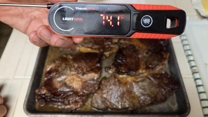 I tested the Lightning instant read meat thermometer by ThermaPro during prep for a recent meal. This product delivers! When cooking, time is key. Having a product that quickly provides an accurate read out is very important. This thermometer is easy to use, has a good feel/weight to it, folds up and looks good, too. (I tested the thermometer in the air as well as inserted into cooking meat so the contrast of temps could be seen.) I am looking forward to using the Lightning Instant Read Thermometer when prepping the Thanksgiving turkey!