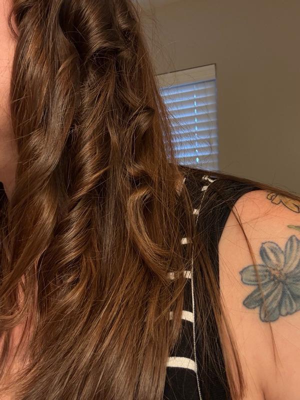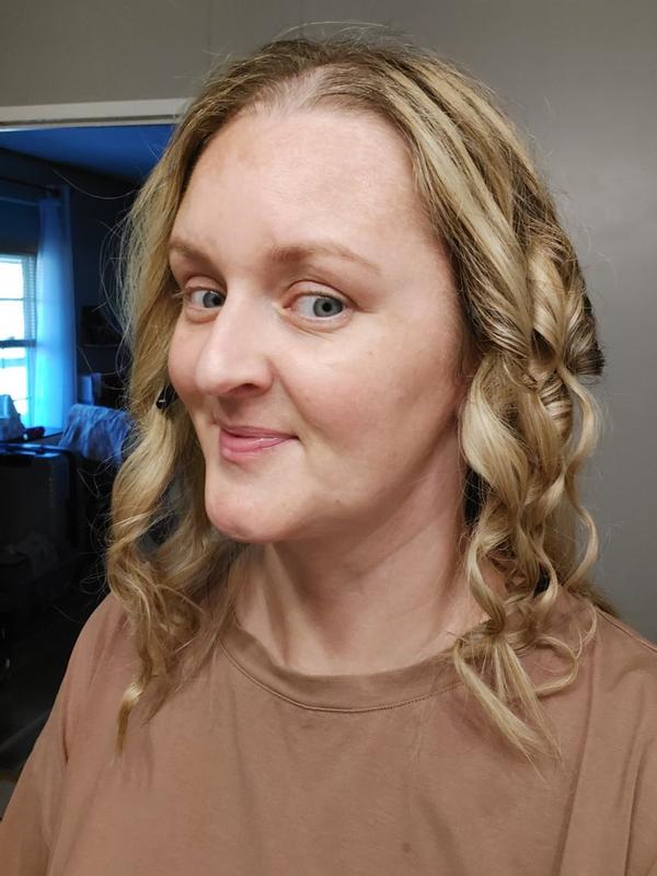 Curling iron rod is a bit smaller than what I typically use so it creates extremely kinky curls. I added more hair than typical when curling so it gave it more of a waved/curl aspect. I absolutely loved doing it this way because of the heat it still gave a good curl but wasn’t too kinky curly!