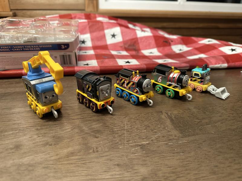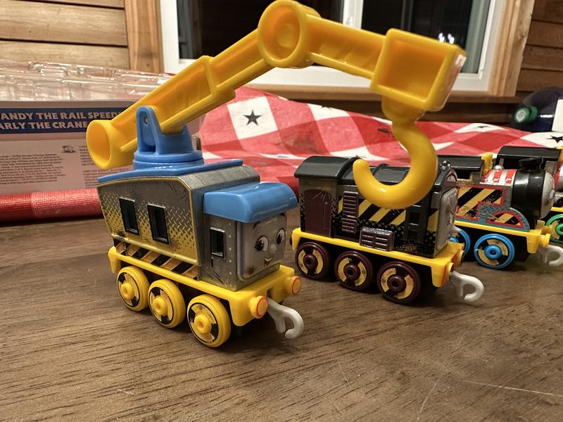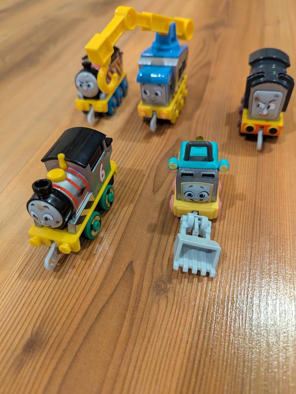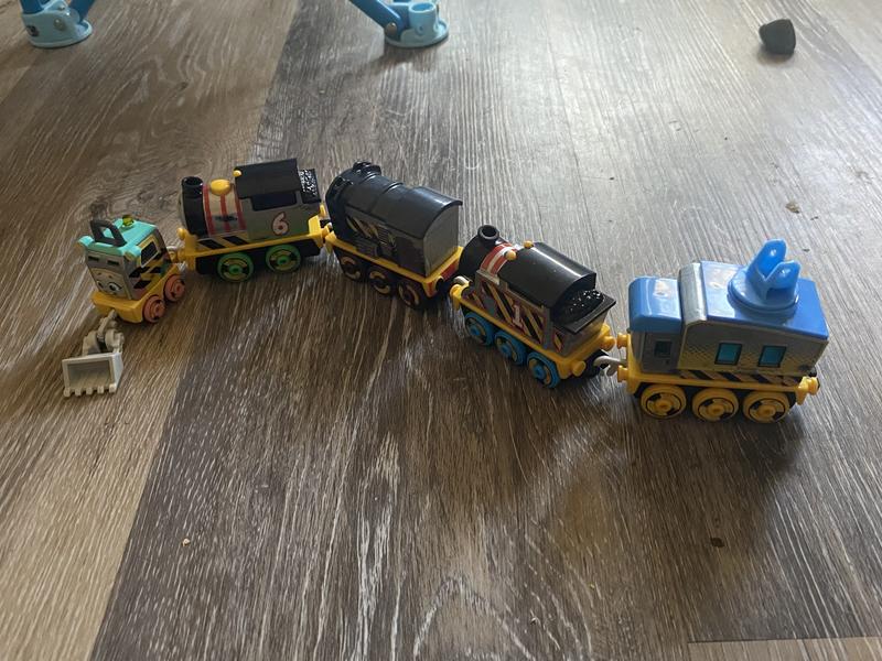 These are a great addition to my son’s Thomas collection. These are cute I love the construction theme. They roll and move very smoothly. The crane and scoop are great. And we love the colors of these trains. I love how there names are on the bottom of them so when my little forgets we can just look.