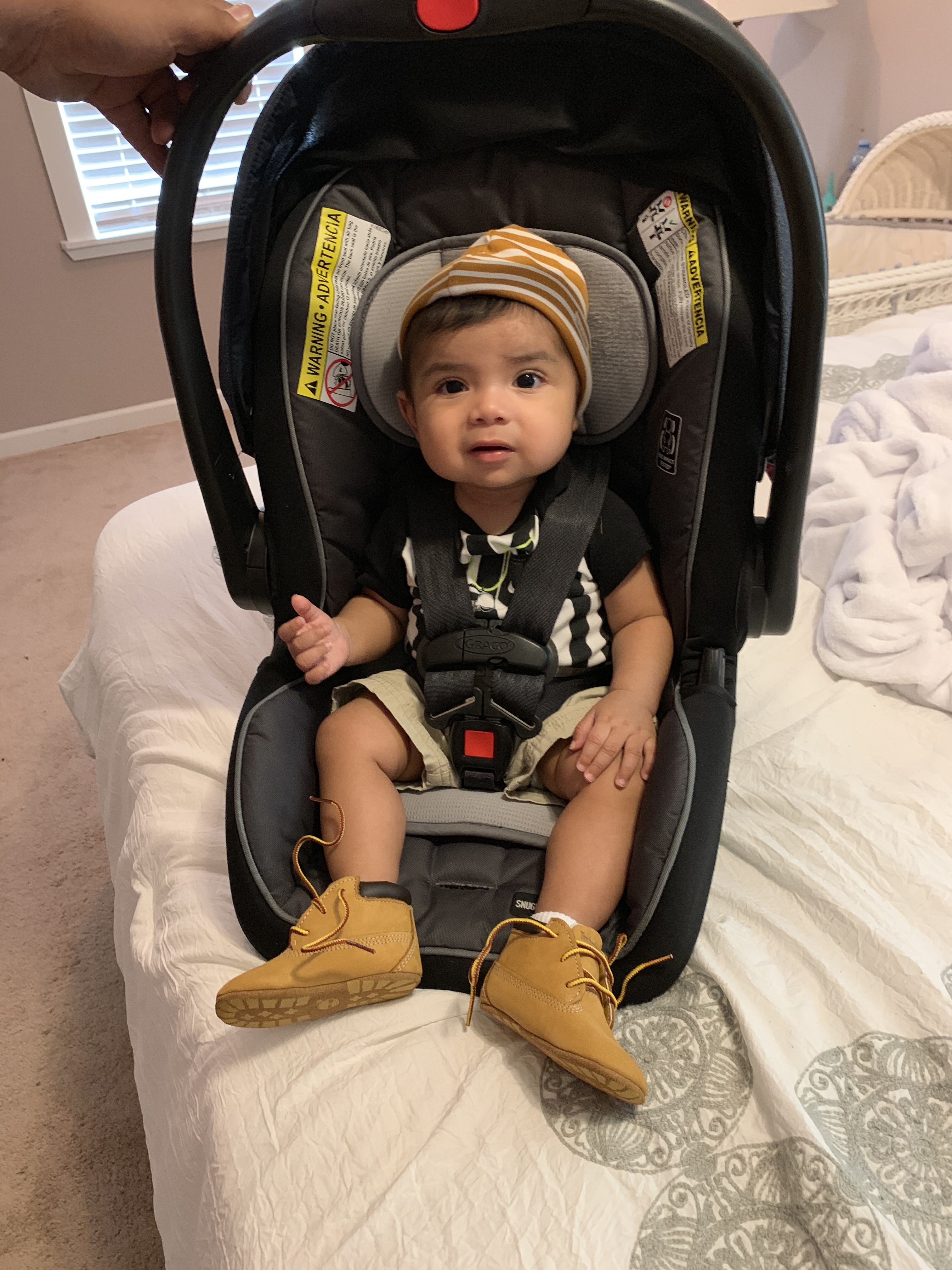 Excellent fit, stylish bought for my 2 month old niece! Great fit
