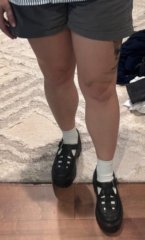 I love these shoes! They're super cute and trendy, but the chunky heel gives them an edgy vibe. There's so many fun outfits you can wear these with. My favorite is with white ruffle socks and a dress.