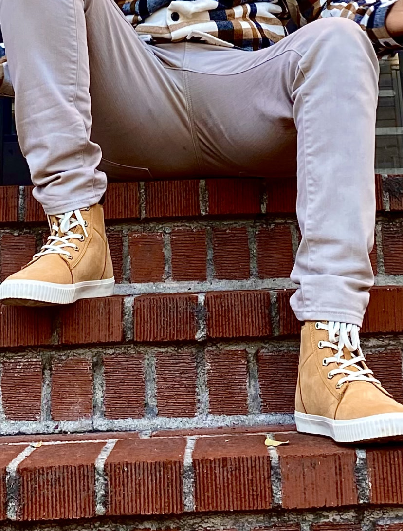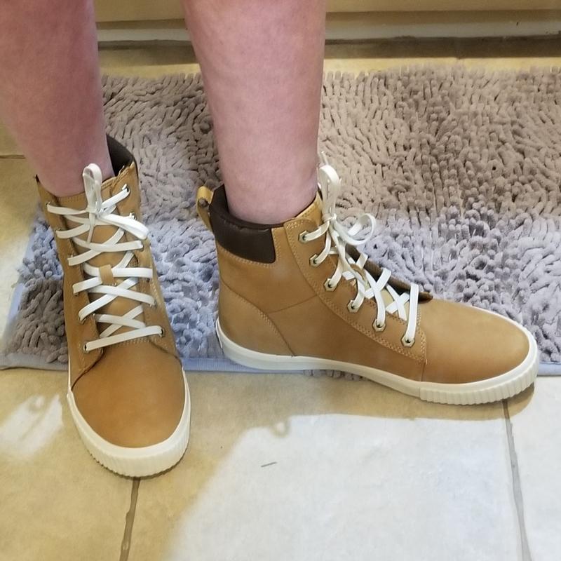 Gorgeous, quality Timberland look and build but Converse feel at the footbed. This sneaker/boot should have a better; more comfortable footbed. Half a day(2x) and I was tired of them. The ankle is ample but the foot is not wide foot friendly at all. If wide is ever in stock, get them. Leaving the shoe stretcher in place for a week did condition the leather. Dressed up or down this Timberland sneaker/boot says I'm cute but don't try me.