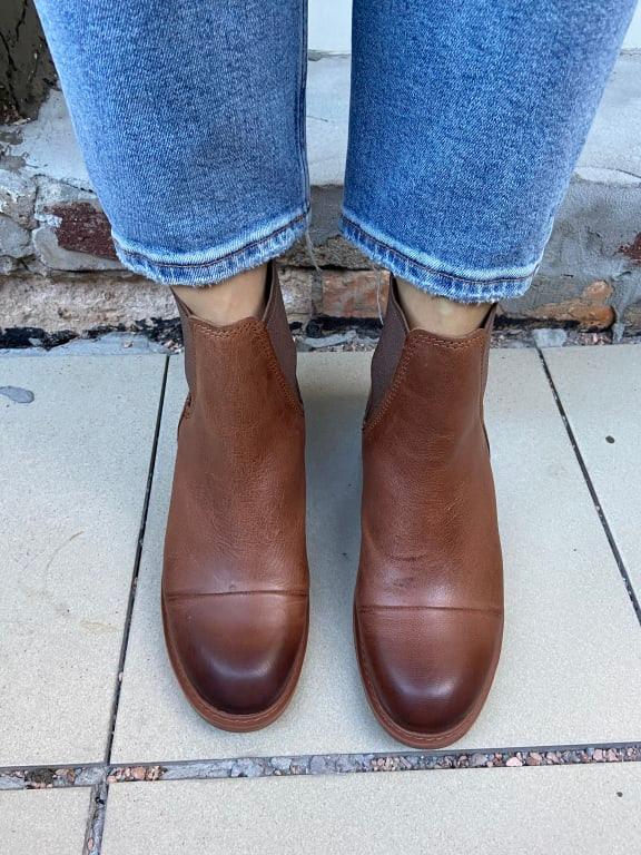 I love these boots! Great color and quality. I'm getting lots of compliments. I have somewhat narrow feet, and the "normal" width of this boot fits me well. It feels snug and structured, but not tight. I ordered my usual size. The heel is a tad on the heavy side.