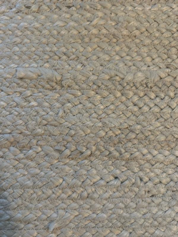This is a lightweight, lovely jute rug. The blended fibers are strong and durable and yet not stiff. It is easy to move around and would look good in an entry, under a small dining table or bedside. The rug is a lovely addition to our home.