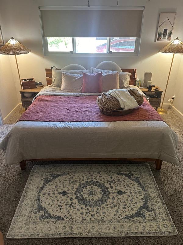 So I placed the rug in my room just close to the bed and it looks pretty comfortable and you can even sit on it and the yoga maybe. And the design looks pretty good and matches the wipe in the room. Definitely love it. Looks pretty durable and I don't think it needs much maintenance.
