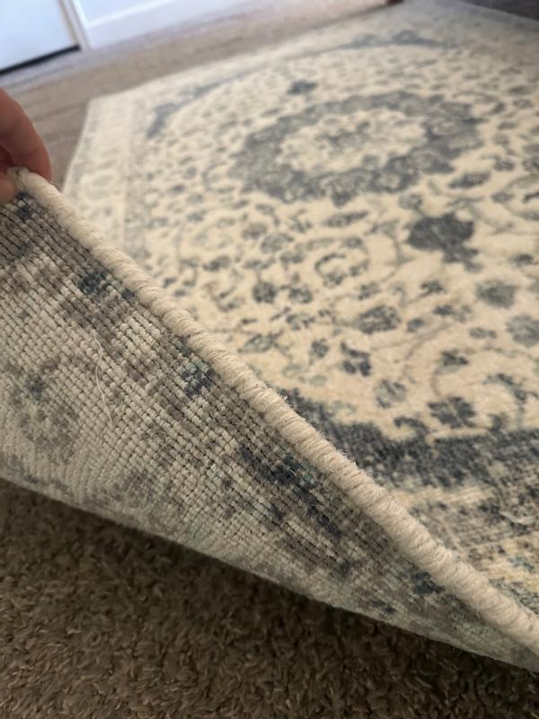 Beautiful Persian rug but very slippery. Does not stay put. It also feels a little bit rough to the touch, not as soft as I’d like. Worth the value.