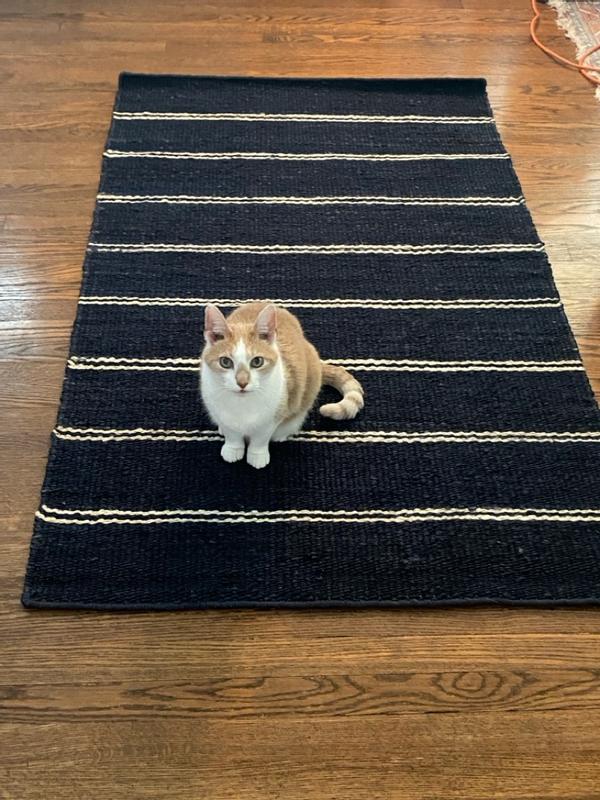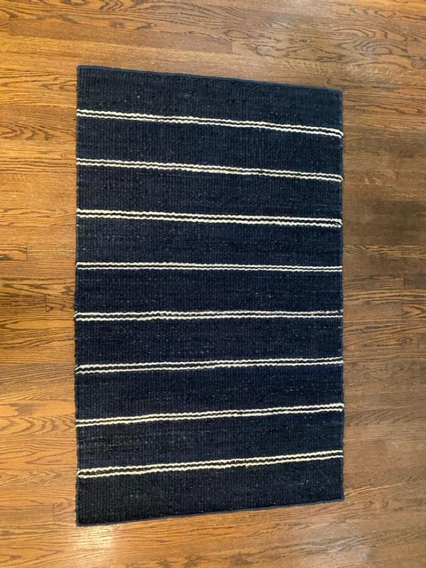 This handmade jute area rug is just the perfect one that I needed for the area in front of my French door. It is the right size for the area. The design is simple and the rug is durable. Easy to vacuum and clean. I love the navy blue color. It suits my decor and I am very happy that it looks elegant. I am sure this will last for a long time! Great quality overall and doesn’t slip as well. Truly impressed with this area rug.