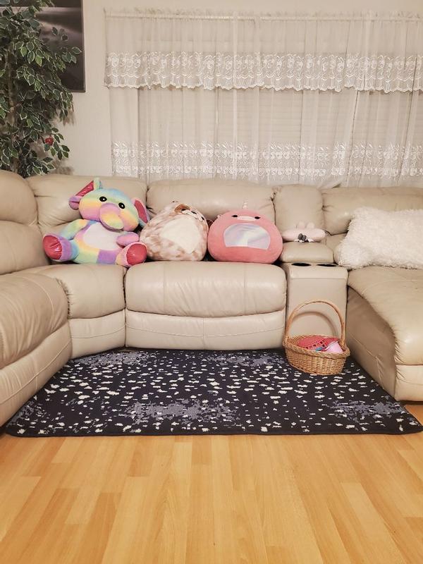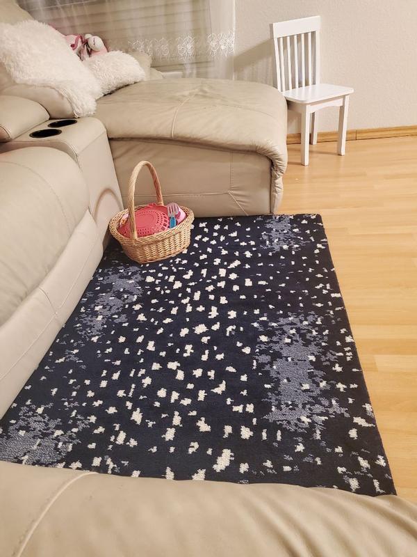 The area rug is very comfortable the texture is soft but firm. The design has its own unique look with black and gray also white in it nice size. The product is a great choice the price.