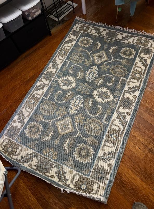 High quality, sturdy and super soft rug. I was positively surprised when I opened the rolled up carpet and laid it out. No chemical smells, and it laid down perfectly right away. No need to tape down any corners. I read, that the rug was all natural and handmade, but until I received it, I didn’t know how much of a difference this would make. Even though it’s in the kitchen area right now, it’ll soon be in the living room, so we all can enjoy sitting on it, not just our new carpet super-fan doggie. It vacuums easily, and stays super soft, no traffic pattern yet. Definitely recommend! 👍🏻