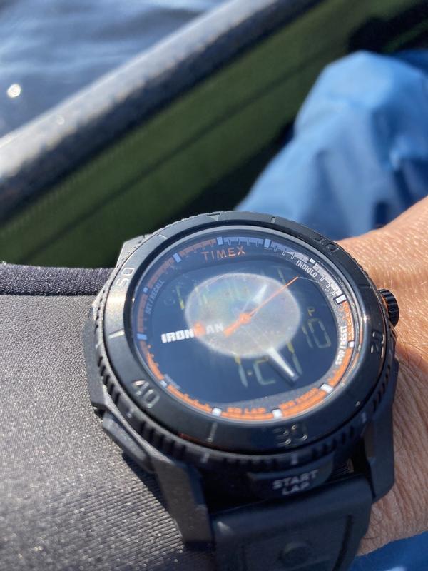 Great watch but it has a couple of flaws. The location of the white Ironman logo can be confusing since the clock arms are also white. Depending on the location of the arms, it can be hard to read the digital time underneath.