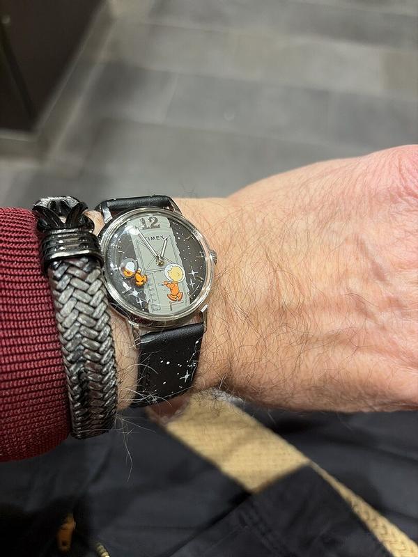 A very classic styled dress watch with a pair of my favorite Peanuts characters. Snoopy floats as the second hand while Chuck sticks to the vessel. Love the hand-wound movement and winding it every morning as well as the sound when held up to the ear. Keep in mind the watch is a 50's/60's style dress watch so is much smaller than a sport watch. The watch looks bigger than it is in the pictures. The wristband is comfortable and adds a little flair to the watch with the star pattern. It's compatible with other Timex 18 mm Leather bands and is easy to swap out if you want to make it more discrete. Overall, a great hand-winder for Peanuts fans.