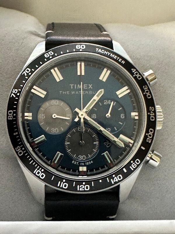 There’s very little to dislike about this watch, especially at this price point. It looks fantastic and has a distinctive presence on the wrist (7 inch wrist), with polished indices that catch the light beautifully and enhance legibility from a distance. The lume performs well—nothing extraordinary, but certainly adequate. The blue dial is absolutely stunning and gives the watch real character. It’s easily earned a place in my weekly rotation. I also appreciate the subtle nod to Waterbury, which feels personal since I’m originally from the area. My only real complaint is that I wish TIMEX offered an option for a stainless steel bracelet.