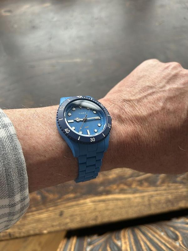 I love the watch! I expected it to be more plastic feeling but it doesn't at all. I really wanted the pink/orange version but settled for the blue. I'm a fan!