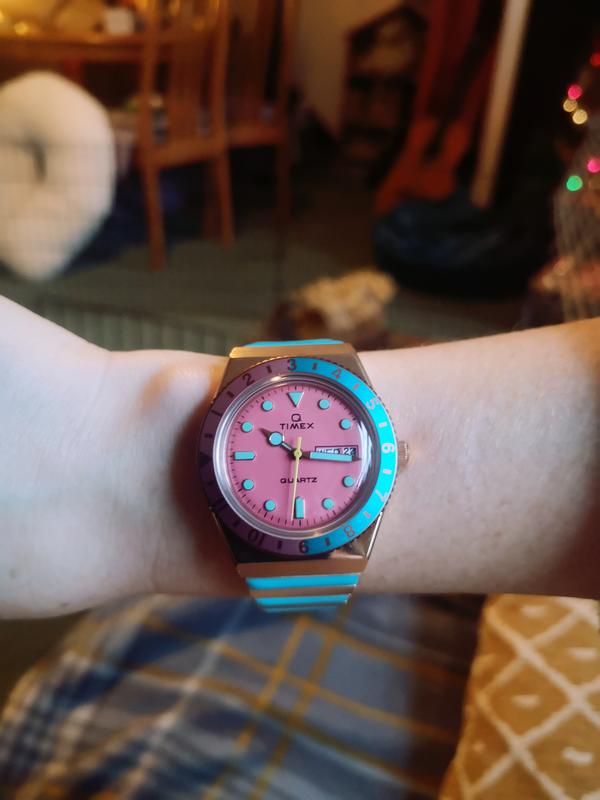 I love this watch! Love that it's so colorful, and the stretch band is my favorite part. It was so easy to remove the links for a perfect fit! And, of course, it keeps perfect time/day/date!