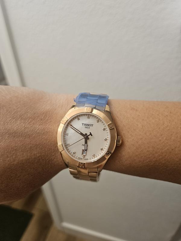 A design for both special occasions and everyday wear, the PR 100 Sport Chic watch from Tissot's T-Classic collection is embellished with luxurious diamonds. Style #T1019103311600